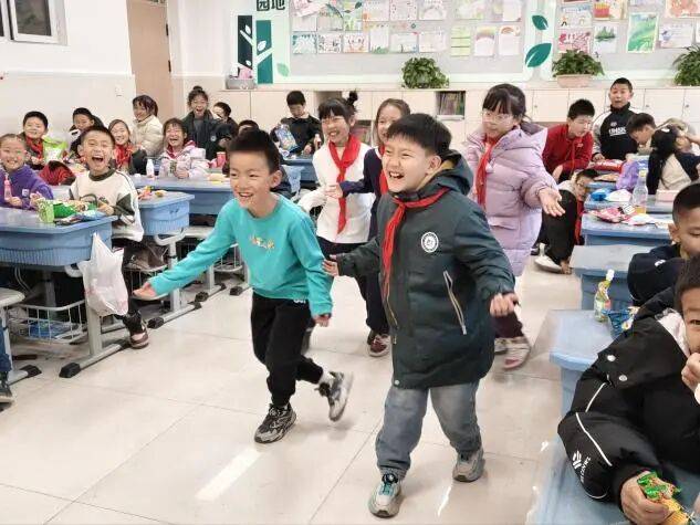 在各班级精心布置的联欢现场,欢声笑语交织成欢乐的海洋。教室里张灯结彩,洋溢着浓厚的节日气息。同学们纷纷秀出才艺,清脆的歌声、优美的舞蹈、深情的朗诵、精彩的乐器演奏轮番上演,舞台虽小却尽显育才学子的多才多艺与蓬勃朝气。趣味盎然的游戏环节更是将气氛推向高潮,“抢椅子”、“猜谜语”、“团队接力”等活动中,大家团结协作、机智互动,掌声、欢呼声不断。老师们也融入其中,与孩子们同乐同笑,亲切的鼓励与温暖的陪伴让每间教室都化作充满爱与欢笑的大家庭。这些多彩的瞬间,不仅展现了班级的凝聚力与创意,更让每颗童心在参与和分享中感受到成长与节日的双重喜悦。