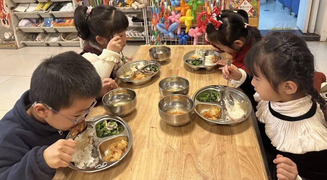 新年会餐在暖融融的欢愉中开启,孩子们眼里映着节日的光彩。美味的蛋糕与丰盛的餐点相映成趣,每一道菜都盛满新年的祝福。当小手捧起可口的蛋糕,当“请你先尝”的稚语轻轻响起,节日的甜蜜便在这分享间流转成双倍的馨香。幼儿园中浮动着饭菜的香味与清脆的笑声,孩子们品尝的不仅是食物的美味,更是团聚的滋味;他们学会的不仅是用餐的礼仪,更是如何将心中的暖意,妥帖地安放在每一次伸手、每一个微笑里。此刻,欢声正满,未来可期。